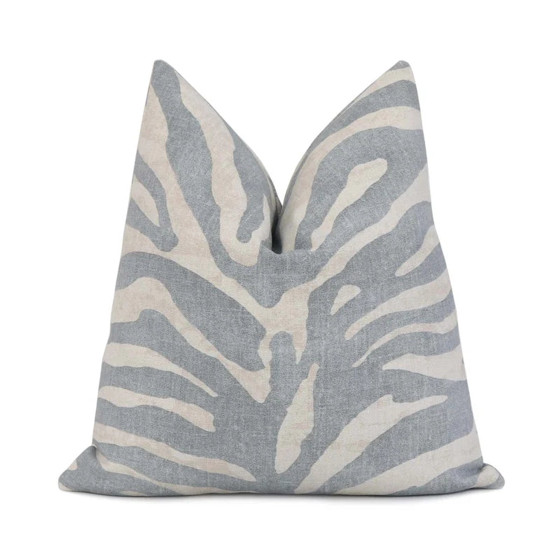 Channel your wild side with this versatile zebra pattern pillow cover. This aqua blue and neutral beige color scheme is a classic that will take any pillow mix to the next luxe level. Each pillow cover is individually handcrafted and finished with our iconic brass zipper for an added pop of glam.